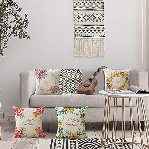 Hodeacc 6 Pezzi federe per Cuscini Decorativi Fiori Primaverili, federe per Cuscini Quadrati federe per Divano Poltrona Letto, 18 x 18 Pollici, Solo Custodia