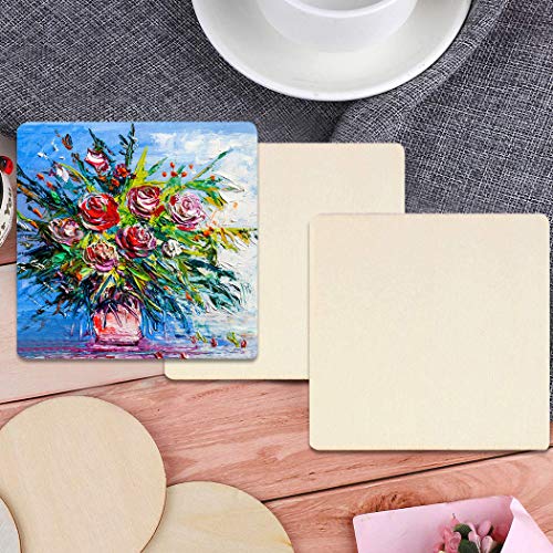 Hodeacc, 100 pezzi quadrati in legno grezzo, 10,2 cm, in legno vuoto, per fai da te, artigianato, pittura, sottobicchieri, arte