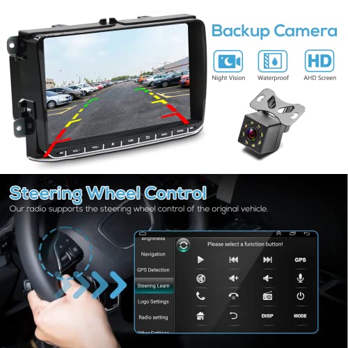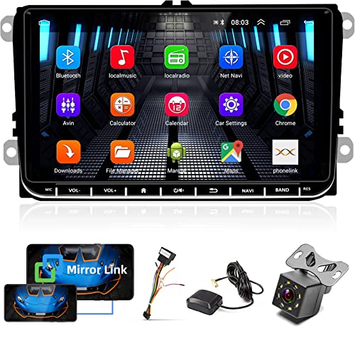 Hodozzy Android Autoradio 2 Din GPS per VW, 9 Pollici Touchscreen Wifi Bluetooth Mirror Link Radio FM Lettore Stereo per Auto per Golf 5 Seat Skoda + Canbus + Telecamera Retromarcia