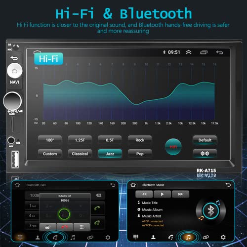 【Autoradio Bluetooth con Radio FM/RDS e Hifi】 Questa autoradio a doppio din con Bluetooth supporta le chiamate in vivavoce Bluetooth e la riproduzione musicale Bluetooth. L'autoradio FM preimpostata con un'ampia gamma di canali (FM87.50-108.0MH), consente di ascoltare notizie, musica e programmi in qualsiasi momento sulla strada. È presente un'app di equalizzazione, con effetto musicale hifi altamente personalizzato, l'effetto sonoro pu