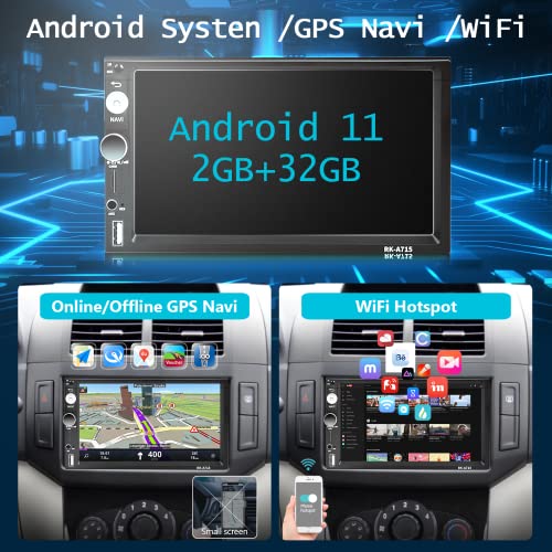 Hodozzy 2 Din Autoradio GPS 2GB 32GB Android 11 mit Wireless Carplay, Android Auto, 7 Pollici Touchscreen Auto Stereo Radio mit Bluetooth Wifi Navi GPS FM/RDS Radio HiFi AHD Telecamera Posteriore USB