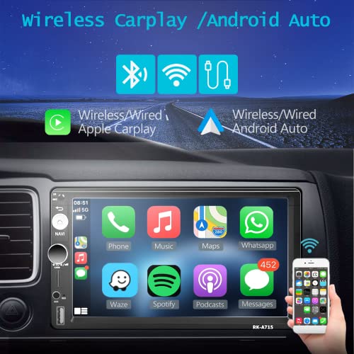 【Wireless Carplay & Android Auto】Questa autoradio a 2 din è compatibile con Apple Carplay (connessione wireless o USB) e Android Auto (connessione USB), consentendo un controllo superiore dell'assistenza vocale e facilitando l'accesso alle funzioni del telefono, tra cui musica, navigazione GPS, chiamate, notifiche, messaggi e molto altro ancora, mantenendo le mani libere per manovre di guida totalmente sicure