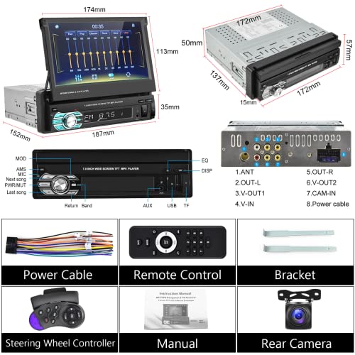 Hodozzy Autoradio 1 Din con CarPlay e Android Auto Display Estensibile Manuale da 7 pollici Supporto FM Bluetooth Android/iOS Mirror Link SWC, Autoradio 1 Din con telecamera per auto AHD/USB/TF/AUX...
