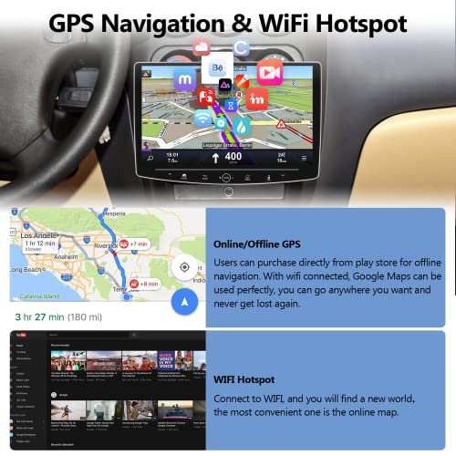 【Radio Android 11 con navigazione GPS/WiFi】 Ricevitore GPS integrato, l'autoradio Android preinstalla "Here We GO" per le mappe offline (mappa mondiale gratuita), supporta anche le mappe online. Supporta la connessione wifi o hotspot, la navigazione su siti web, il download di APP dallo Store. E l'autoradio a 1 din con un'efficiente funzione di dissipazione del calore
