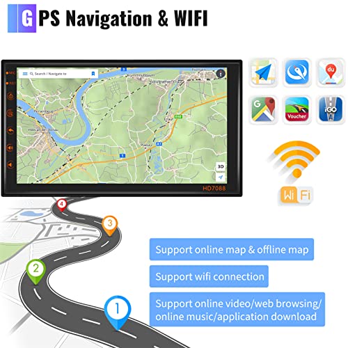 【GPS Navigation et WiFi】 WiFi intégré, prise en charge de la connexion WiFi/WiFi hotspot, vous pouvez télécharger des applications supplémentaires sur l'autoradio. Récepteur GPS intégré, vous pouvez télécharger des cartes gratuites à partir de l'application de navigation "Here We go" dans le menu "Télécharger la carte", puis profiter de la navigation hors ligne. Ou vous pouvez utiliser d'autres applications cartographiques en ligne.