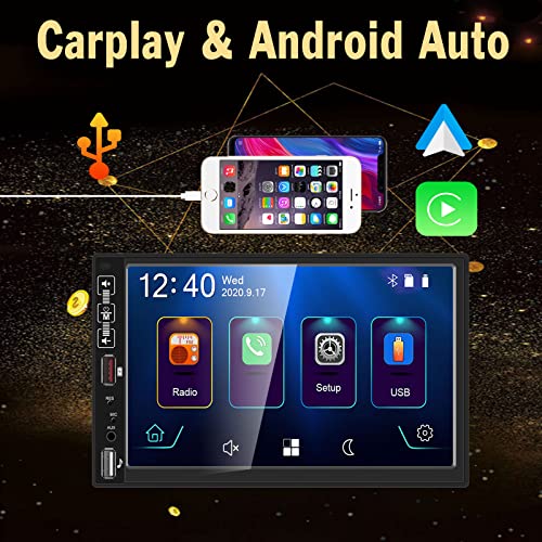 Hodozzy Carplay/Android Auto Autoradio 2 Din 7 Zoll Touchcreen MP5 Display Autoradio mit Bluetooth Freisprecheinrichtung/FM/Mirror Link/USB/SWC/AUX+AHD Telecamera Retromarcia+Mikrofon