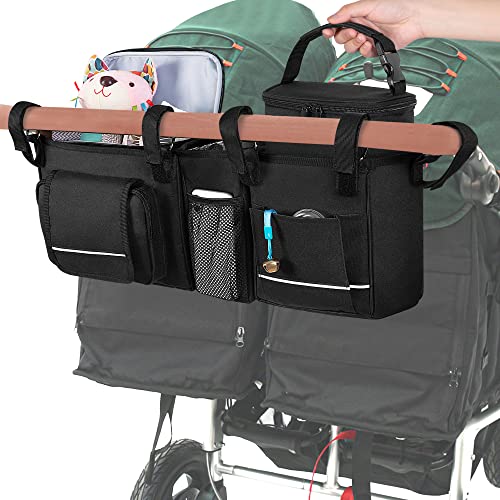 HODRANT Organizer per Passeggino Doppio Sospeso, Compatibile con Baby Jogger City Mini GT2 Double & Compatibile con BOB Duallie Passeggino, Caddy per Passeggino con Termica Staccabile, Solo Borsa