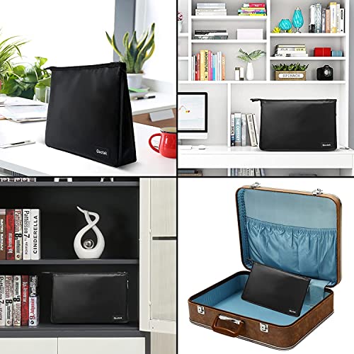 Hodufy - Borsa portadocumenti espandibile a prova di fuoco, 30 x 20 cm, con cerniera impermeabile per oggetti di valore, documenti A4, gioielli, passaporti, tablet (nero)