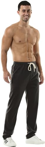 HOEREV Pantaloni Casual da Uomo in Lino,Nero,Medium