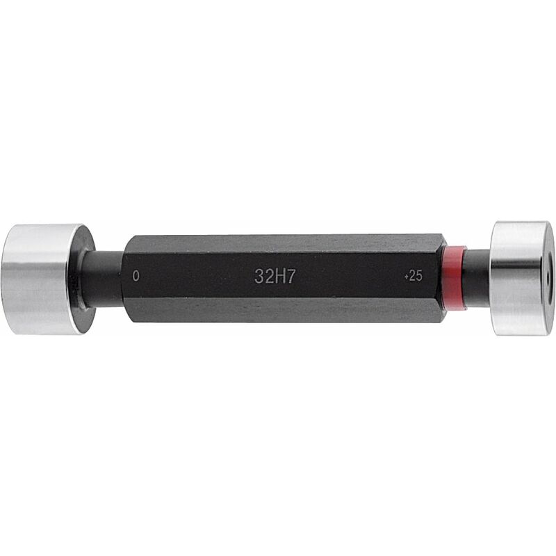Il lato passa di questi calibri viene realizzato con un sovrametallo di usura a norma DIN 7164. Lati passa/non passa in acciaio per calibri di prima qualità, temprato, sottoposto a distensione, rettificato e lappato. Calibri a tampone con classe di tolleranza H7. Norma: Toleranz und Abmaße nach DIN EN ISO 1938-1, DIN 2245-1 und DIN 7164. Nota: * Ulteriori misure intermedie su richiesta oppure ordinabili all'indirizzo www.hoffmann-goup.com ad es. n. art. 484000 Dim. 82. * Per i calibri di controllo (senza sovrametallo di usura) vedi n. art. 484027;