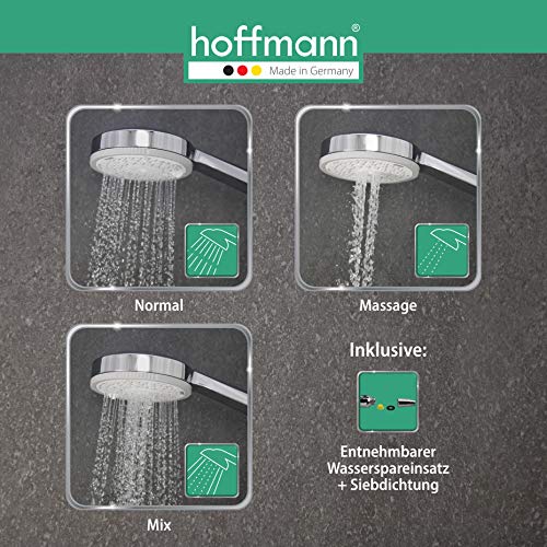 Hoffmann Made in Germany Asta doccia Atlanta Plus con asta doccia da 90 cm, doccetta da 105 mm, 3 tipi getto, tubo da 1,60 m e scorrevole. L'asta, il supporto e il supporto per doccia sono in ottone