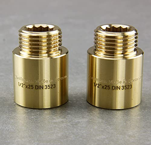 Hoffmann Made in Germany Set di prolunga per rubinetto in ottone, 1/2" x 25 mm, 2 pezzi, prolunga filettata, prolunga per connettori.
