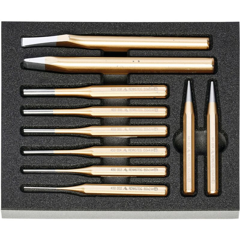Assortimenti di utensili in alloggiamenti sagomati in espanso rigido bicolore in PE. La struttura non porosa dell'espanso è resistente all'olio e impermeabile. Strato superiore color antracite, quello inferiore di contrasto grigio mette subito in evidenza gli utensili mancanti. Gli alloggiamenti in espanso rigido riempiono 1/4 (10 G × 8 G o 250 × 200 mm) o 1/2 (20 G × 8 G o 500 × 200 mm) della superficie utile dei cassetti. Per: Nuovi carrelli portautensili GARANT per officina con cassetti a estrazione totale e un passo nuovo da 20 G × 16 G o 500 × 400 mm (larghezza × profondità). Gli espansi di dimensione 10 G × 8 G si adattano agli Shadow Board n. art. 923210 Dim. 250 (2 espansi per ciascun Shadow Board). Fornitura: Inserto in espanso rigido vuoto n. art. 952001 Dim. 954652: 1 pz. Scalpello piatto n. art. 740500 Dim. 200: 1 pz. Scalpello a unghietta n. art. 740600 Dim. 200: 1 pz. Punteruolo n. art. 745500 Dim. 3;