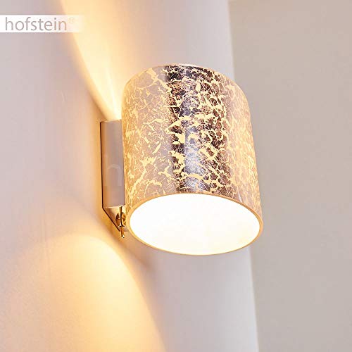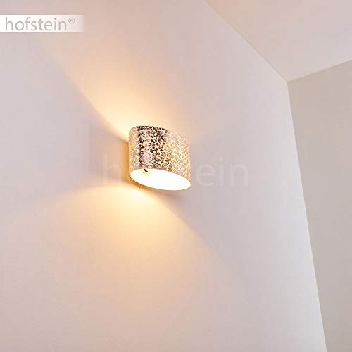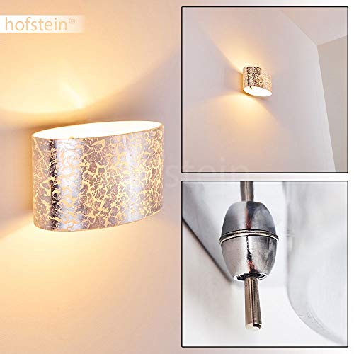 Hofstein Lampada da parete Rapar in vetro di colore Argento strutturato - Applique murale per interni con forma ovale - Luce effetto doppio Up Down - Interruttore di accensione presente sulla lampada