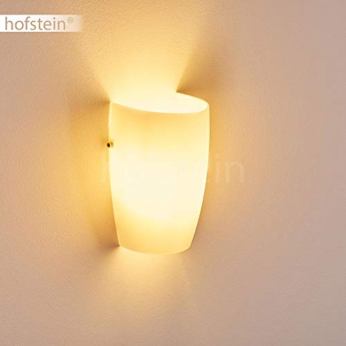 Hofstein Lampada da parete Severo in bianco, lampada da parete moderna in vetro con effetto luce, 1 attacco E27, lampada da parete per interni con effetto up & down, senza lampadina/e