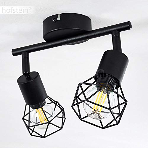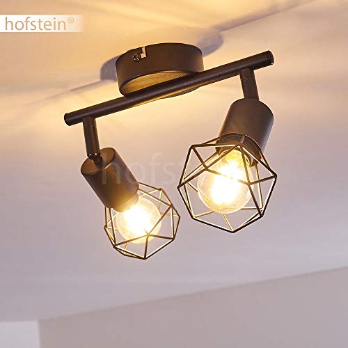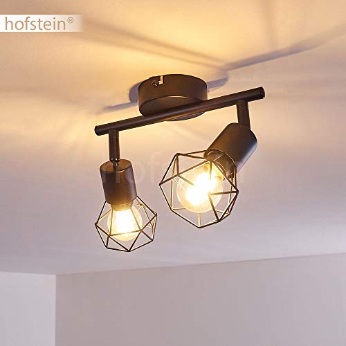 HOFSTEIN Lampada a soffitto Baripada, lampada in metallo in nero, 2 luci, 2 x attacco E14, spot regolabile in design retrò/vintage in look griglia con effetto luce sul soffitto, senza lampadina/e