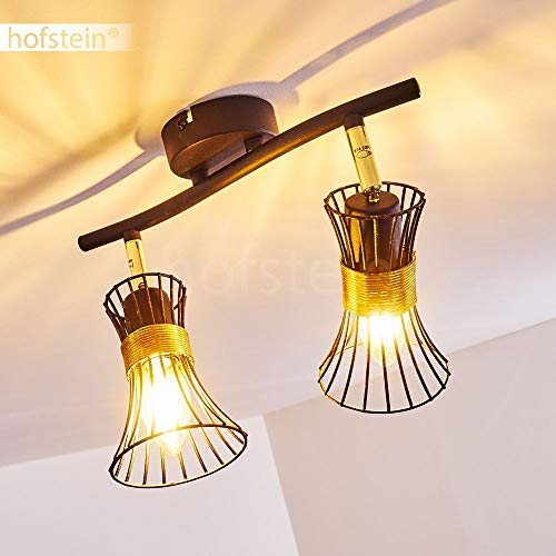 Hofstein lampada a soffitto Ayen, lampada a soffitto in metallo in nero/oro, 2 luci, con faretti regolabili, 2 x attacco E14, faretto dal design retro/vintage, senza lampadina/e