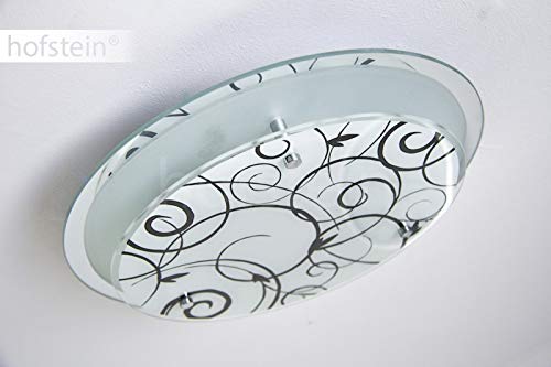 Hofstein Lampada da soffitto rotonda, decoro floreale, bianco opaco/nero, lampada da soffitto con paralume in vetro, 2 x E27, per soggiorno, camera da letto, cucina, corridoio, senza lampadina/e