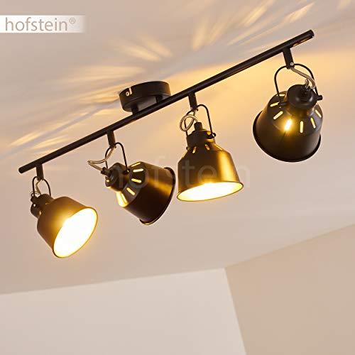 HOFSTEIN Lampada da soffitto Safari, lampada da soffitto in metallo in nero/oro, a 4 luci, con faretti regolabili, 4 x attacco E14, spot dal design retro/vintage, senza lampadina/e