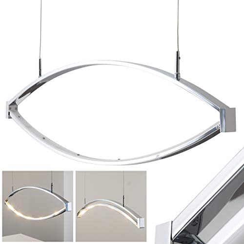 Hofstein Lampada a sospensione LED Alcove, lampada a sospensione in metallo curvo in cromo, altezza massima 124,5 cm (regolabile), lampada a sospensione con archi di luce regolabili