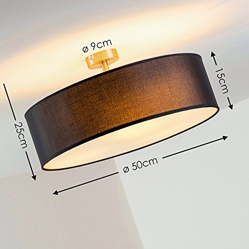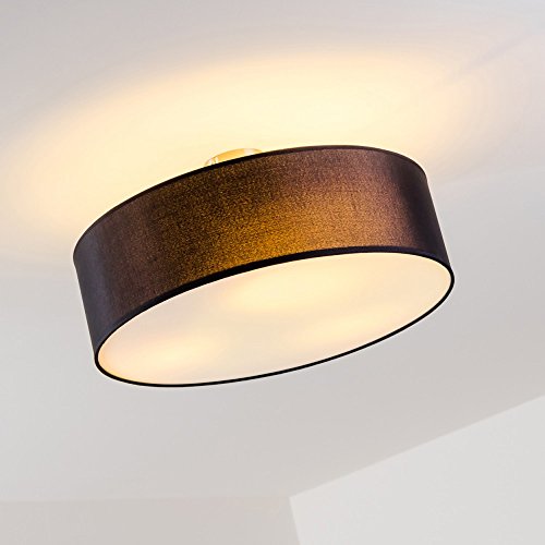 Hofstein Plafoniera circolare paralume in tessuto nero design moderno
