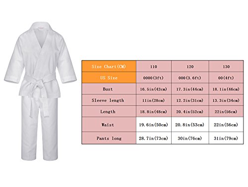 Hogar Amo - Tuta Karate per bambino 110 - 130 cm tuta da allenamento cotone per principianti di arti marziali karate Basic Sport Uniform Suit con cintura bianca, 120CM