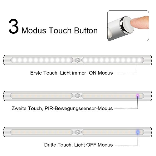 HogarTech 2 W, lampada LED, luce da specchio con interruttore touch, 6000 - 6500 K, lampada per il trucco effetto giorno, decorazione ideale per parete e bagno, ricaricabile.