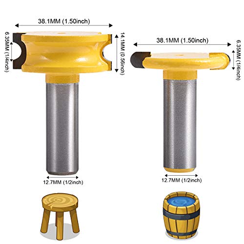 [INTRODUZIONE DEI PUNTI DEL ROUTER] : 2 pezzi di 1/2 "diametro del gambo flauto e set di punte per router di perline. Diametro della taglierina: circa 1-1 / 2";