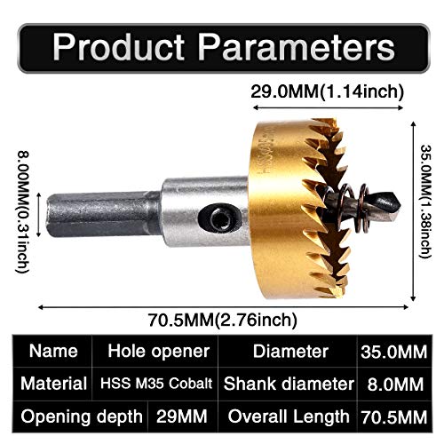 HOHXEN Seghe a Tazza HSS 35mm in Acciaio Inossidabile,Foratura del Metallo per Utensili Elettrici (30-60mm)