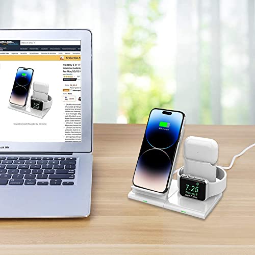 Hoidokly Caricatore Wireless 3 in 1 Ricarica Wireless Supporto di Caricabatterie Docking Station per iWatch Series iPhone 14/14 Pro/14 Pro Max/13/13 Pro/12/11/11 Pro Max/XS/XR/X/8P e AirPods Pro/2/3