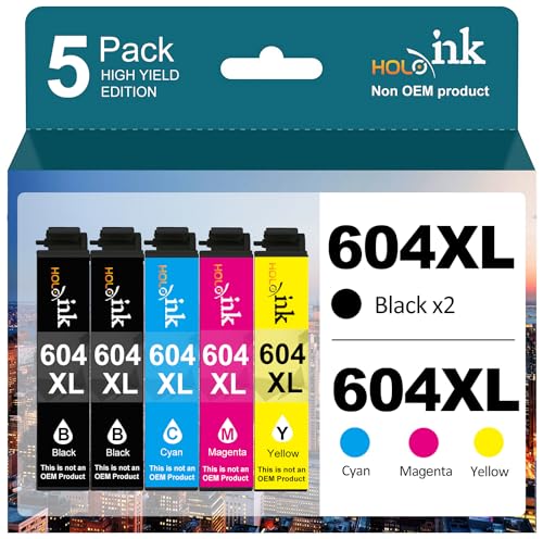 Contenuto della confezione: 5 confezioni di cartucce d'inchiostro compatibili per Epson 604XL (2x Nero, 1x Ciano, 1x Magenta, 1x Giallo)