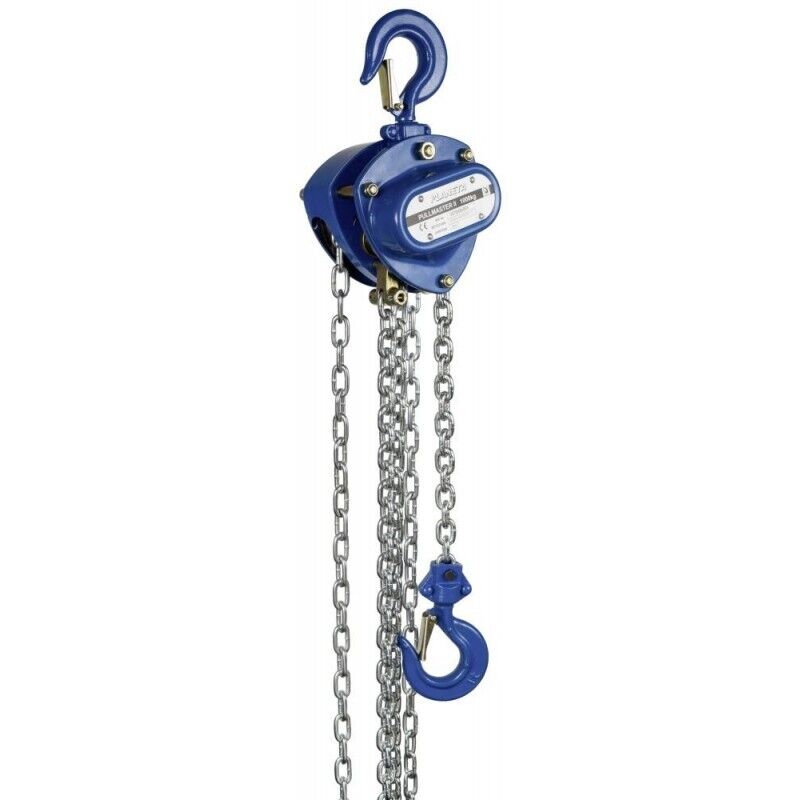 Paranco a ruota cilindrica PULLMASTER-II, sollevamento standard 3 m, portata 1000 kg. Fornitura = montato. Portata = 1000 kg. Sollevamento = 3 m. Numero tiri catena = 1 pz. Materiale corpo = lamiera d'acciaio, verniciata a polvere. Fornitura = con catena di carico. Altezza d'ingombro = 332 mm. Trazione catena con carico massimo = 32.4 daN. Tipo di prodotto = paranchi. Gancio di sicurezza forgiato con sicura. Corpo in acciaio robusto e di lunga durata. Impiego versatile grazie al gancio di sospensione. Paranco a ruota cilindrica dentata molto stabile, dalle dimensioni compatte. Il freno di sicurezza privo di amianto arresta in modo affidabile e mantiene il peso in ogni posizione. Gancio di carico in acciaio da bonifica trattato a caldo e zincato elettroliticamente, con sicura.