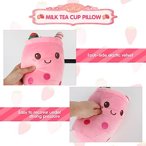 Hojalis Bubble Tea Plushie,25 CM Latte Bambola Morbida Tazza,Morbido Plushie Boba Tè,Bubble Tea Cup Plushie,Cuscino di Plushie Kawaii Giocattolo per Bambini Regalo di Compleanno (Rosa)