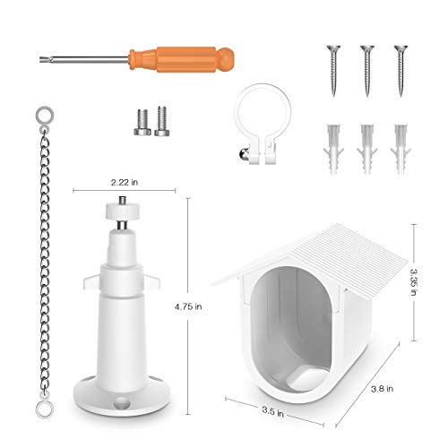 Facile da installare: l'installazione è facile come da immagine. Collegare il supporto in plastica al retro della fotocamera. Clip il cinturino di plastica intorno al Arlo Ultra. Fissare le catene utilizzando un cacciavite.