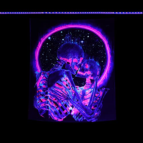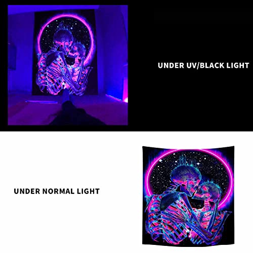 HOLAVIDA Arazzo Tarocchi Gli Amanti, The Kissing Lovers Scheletro Neon Arazzi Da Parete Hippie Casa Arredamento Per Party Camera Da Letto (150cm×130cm)