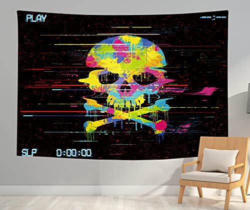 TESSUTO PREMIUM: 100% poliestere Trippy Skull Tapestry, morbido e flessibile, ecologico e inodore, combinato con stampa 9d ad alta definizione per colori vivaci e linee chiare, se sei un amante del teschio, amerai questo pezzo perfetto