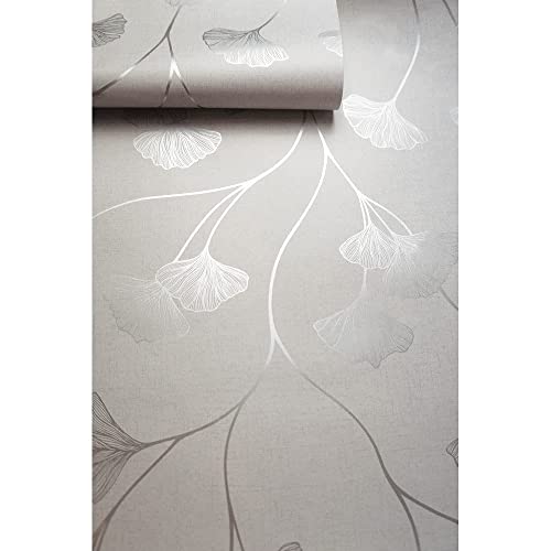 Gingko 12700 - Carta da parati Gingko grigio argento 10,05 m x 0,53 m