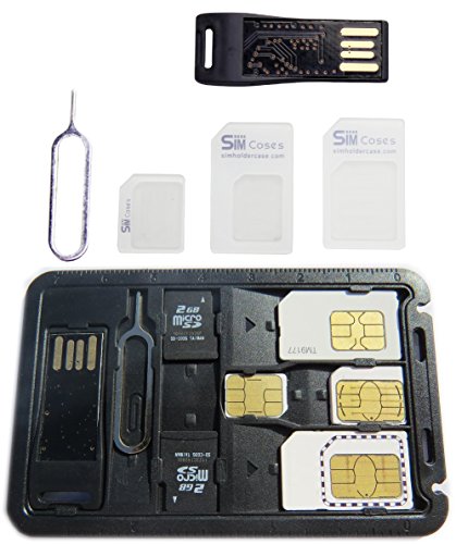 Slim SIM Card holder & MicroSD card Storage Case + lettore di schede di memoria, Contiene 4 SIM Card 1 micro 1 Nano, 2 schede di memoria microSD e perno di Iphone ♦ tra cui adattatori per schede sim 3 1 Iphone espulsione Pin