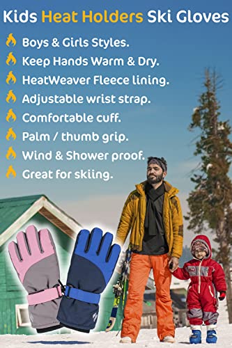 Heat Holders - Bambino Invernali Termici Impermeabili Neve Sci Guanti con Pile (5-10 Years, Blue/Navy (Kids Ski Gloves))
