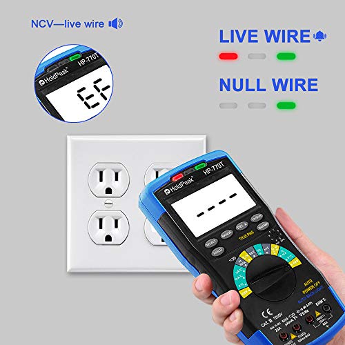 HoldPeak Multimetro Digitale HP-770T 6000 Conta TRMS DMM CATIII 1000V, Auto-Ranging, Data Hold, NCV, AC/DC Amp Ohm Volt Meter hFE Diode LED Tester Condensatore con Termometro e Retroilluminato