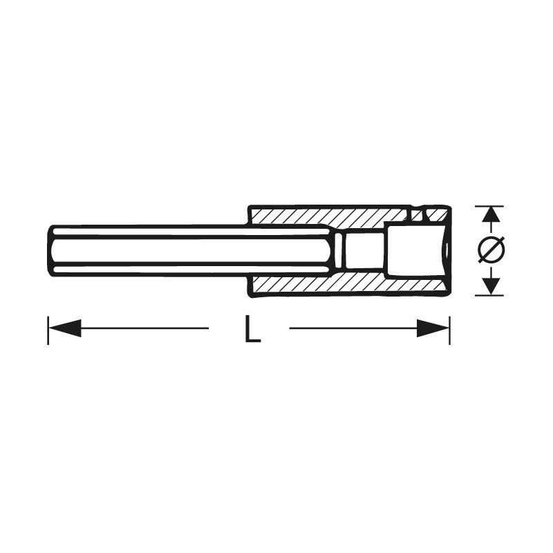 Forgiate in acciaio di grande qualità, svasate internamente per una rapida presa sulle teste delle viti. Quadro femmina con foro a norma DIN 3120-D 6,3. Materiale: Acciaio al cromo-vanadio, esecuzione cromata. Dati tecnici Quadro di manovra femmina Zoll 1/4 Superficie es. cromata Materiale Acciaio al cromo-vanadio Con testa sferoidale sì Tipo di prodotto Bussola Lunghezza, mm 100 Esagono, mm 3 ⌀ Lato azionamento, mm 12