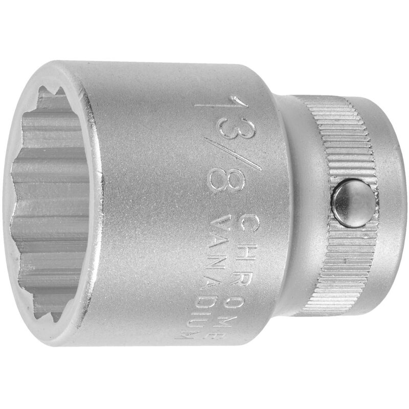 Forgiate in acciaio di grande qualità, svasate internamente per una rapida presa sulle teste delle viti. Aperture a tolleranze ridotte. Quadri femmina con foro di tenuta e pulsante di sgancio. Materiale: Acciaio al cromo-vanadio, esecuzione cromata. Dati tecnici Tipo di prodotto Bussola Quadro di manovra femmina Zoll 3/4 Lunghezza, mm 58 Apertura, Zoll 1,3/8 ⌀ Lato uscita, mm 48