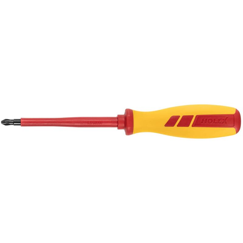 Impugnatura e lama completamente isolate fino a 1.000 V a norma DIN EN 60900 / VDE 0682-201. Robusta impugnatura multicomponente ottimizzata per ergonomia e per coppie elevate. Lama in acciaio per utensili altamente legato. Ogni giraviti viene testato singolarmente in acqua contro la scossa elettrica. Uso: Per lavori su impianti elettrici in tensione fino a 1000 V. Dati tecnici Norma DIN EN IEC 60900 / VDE 0682-201 Tipo di prodotto Giravite Lunghezza complessiva, mm 207 Lunghezza lama, mm 100 Dimensione dell'impronta a croce 2 Per ⌀ viti, mm 3,1 − 5,2