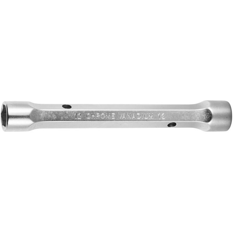 con esagono interno profondo per prigionieri particolarmente sporgenti. Norma: Ähnlich DIN 896 A. Materiale: Acciaio al cromo-vanadio, esecuzione cromata. Dati tecnici Tipo di prodotto Chiave a bussola Processo di produzione forgiate Materiale Acciaio al cromo-vanadio Superficie cromato Lunghezza complessiva, mm 120 Apertura 1, mm 10 Apertura 2, mm 11 Profilo di manovra Bussola con bocca esagonale ⌀ Foro per spina di manovra, mm 5 Esagono esterno codolo S, mm 11