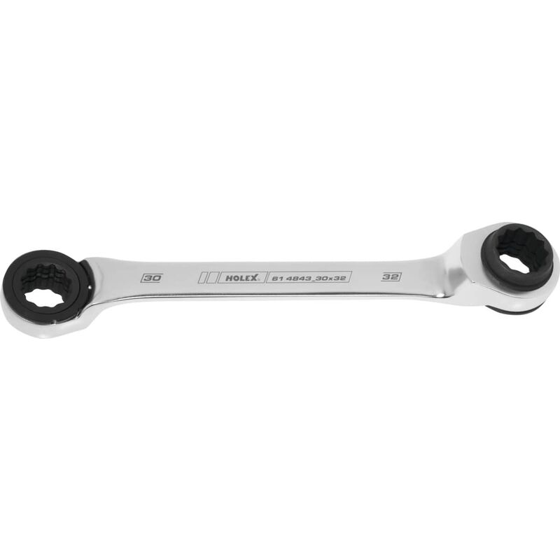 Forgiate. Con aperture a tolleranze strette. Reversibile per serraggio orario e antiorario, nonché per posizione centrale. Aperture diseguali, a curvatura profonda. Anello di registro estremamente stretto: 5°. Materiale: Acciaio al cromo-vanadio, esecuzione cromata opaca. Dati tecnici Anello curvato sì Numero di denti 72 Processo di produzione forgiato Cricchetto reversibile no Superficie es. opaca cromata Materiale Acciaio al cromo-vanadio. Angolo di registro Grad 5 Tipo di prodotto Chiave Apertura 1, mm 30 Apertura 2, mm 32 Dimensione apertura Metrica Lunghezza complessiva L, mm 380 ⌀ Massimo anello D1, mm 60 ⌀ Massimo anello D2, mm 64,5 Altezza massima anello h1, mm 34 Altezza massima anello h2, mm 35