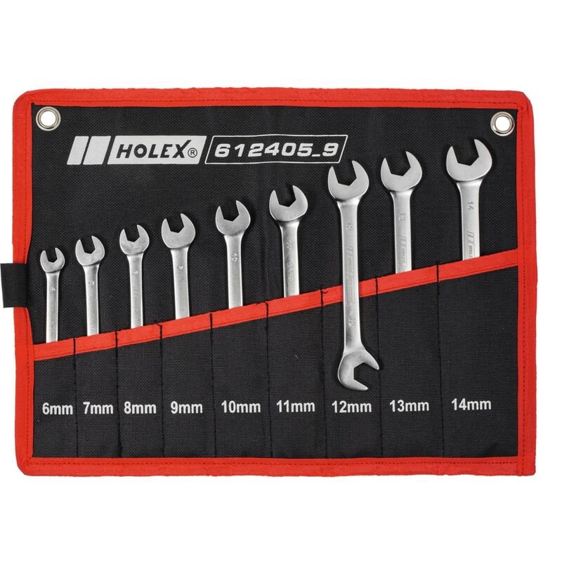 Teste molto sottili. Posizione della bocca diversa (15° e 75°), apertura uguale da entrambi i lati. Materiale: Acciaio al cromo-vanadio, esecuzione cromata. Fornitura: Cad. 1 chiave a forchetta doppia piccola n. art. 612200 / 612205: Dim. 6;