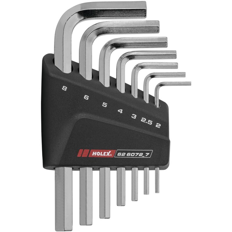 secondo DIN 911/ DIN ISO 2936. Acciaio al cromo-vanadio, estremità lavorate in piano e smussate. Fornitura: Riposte in: Supporto in plastica Cad. 1 chiave maschio piegata n. art. 626037: Dim. 2;