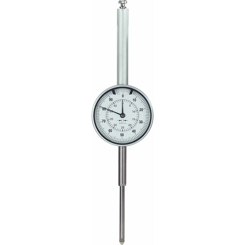 Dimensioni secondo DIN EN ISO 463, ed giugno 2006 (tranne Dim. 100/80). Robusta cassa in ottone, esec. cromata opaca. Codolo di serraggio di ⌀ 8 mm h6, temprato e rettificato. Quadrante orientabile. Lancetta centrale per risoluzione 1/100 mm, lancetta piccola per risoluzione 1 mm. Accessori speciali: Tastatore speciale n. art. 434900;