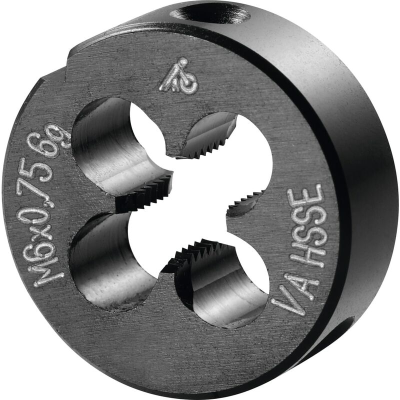 Forma chiusa preincisa con imbocco corretto su entrambi i lati. Imbocco a 2 spire. Lappate e nitrurate, angolo di spoglia superiore ca. 15°. Per acciai ad alta resistenza e inossidabili. Dati tecnici Tipo di filettatura MF Direzione di taglio destra Acciaio < 900 N/mm² m/min idoneo Materiale da taglio HSS E Acciaio < 1100 N/mm² m/min idoneo Tipo di prodotto Filiere a secco limitatamente adatto Acciaio < 750 N/mm² m/min idoneo INOX < 900 N/mm² m/min idoneo Norma EN 22568 Angolo di filetto Grad 60 Olio idoneo Acciaio < 500 N/mm² m/min idoneo Acciaio < 1400 N/mm² m/min limitatamente adatto INOX > 900 N/mm² m/min limitatamente adatto Misura del filetto M6×0,75 Classe di tolleranza DIN 13 6g Passo, mm 0,75 Altezza, mm 7 ⌀ Esterno, mm 20