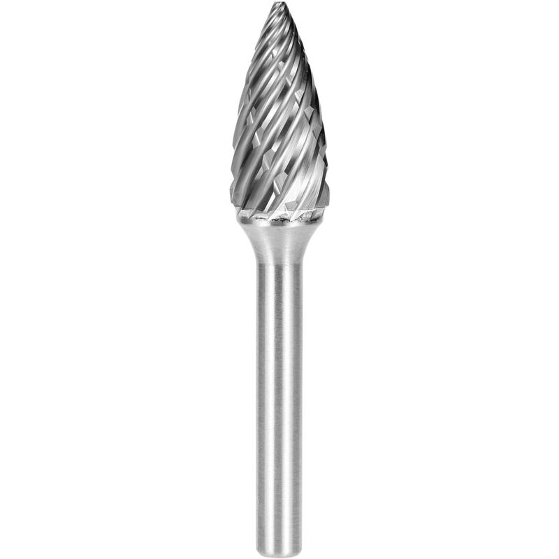L'innovativa geometria dei denti permette elevate prestazioni di truciolatura e contemporaneamente rotazione regolare e facilità d'uso. La formazione ottimale dei trucioli (non appuntiti) consente di ottenere un'elevata qualità superficiale. ⌀ codolo 6 mm. Uso: Ottimizzata per la lavorazione di acciaio e fusione. Dati tecnici Materiale da taglio HM Acciaio < 55 HRC m/s idoneo Acciaio < 67 HRC m/s idoneo GG(G) m/s idoneo Acciaio < 1400 N/mm² m/s idoneo Acciaio < 60 HRC m/s idoneo Acciaio < 900 N/mm² m/s idoneo Tipo di prodotto Fresa rotativa ⌀ Testa, mm 12,7 Lunghezza della testina, mm 25 Lunghezza complessiva, mm 70 ⌀ Gambo, mm 6 della forma a punta Sigla della dentatura Z in acciaio Grado di finezza della dentatura grosso Forma G1225